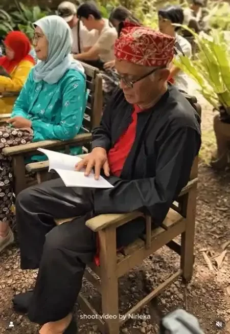 Di ujung halaman tampak sebuah rumah panggung kecil yang telah disiapkan untuk Kang Atep nanti bedah buku tulisannya. Di depannya disiapkan kursi-kursi untuk audience.