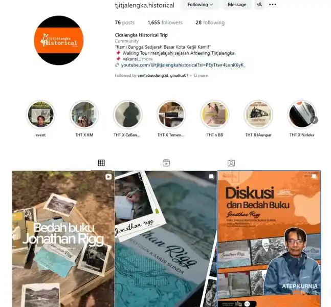 Banyak kota-kota di Indonesia yang ada jejak sejarah dan artefak arsitektur menjadi laboratorium untuk belajar sejarah. Maraknya peminatan terhadap kisah-kisah sejarah seperti ini maka bermunculan komunitas walking tour di berbagai kota, termasuk Cicalengka, yang bernama Tjitjalengka Historical Trip (THT). Bersama tim, mereka ini mendampingi para peminat sejarah untuk jelajah ke objek-objek peninggalan Hindia Belanda yang masih tersisa di Cicalengka dan sekitarnya.