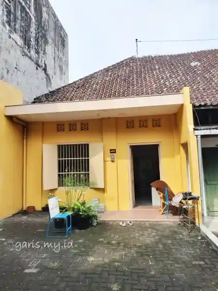 Nah, Omah Wiromargo menempati rumah yang paling ujung berdinding warna kuning, sehingga tampil beda dibandingkan dengan deretan rumah di sebelahnya.