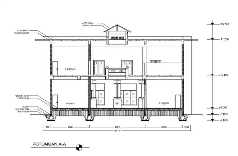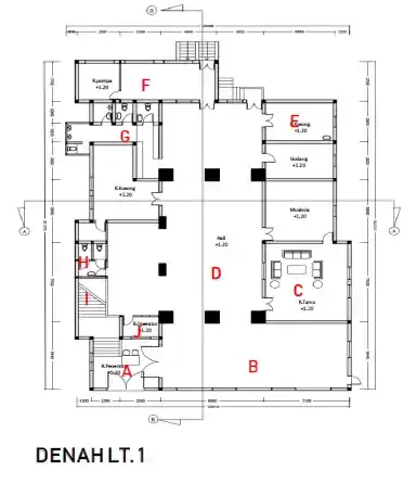 Begitu masuk ke pintu utama, ke kanan ada ruangan besar, sedang kan ke kiri ada tangga ke lantai dua.